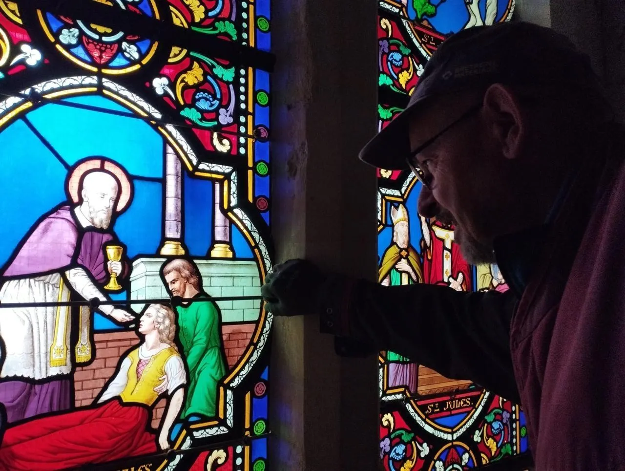 Emmanuel Gallet, maître verrier, a passé des centaines d’heures sur la rénovation des vitraux de l’église de Trémentines (Maine-et-Loire). © Ouest-France