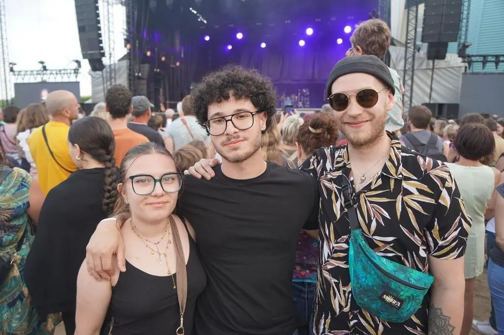 « Les fins de mois sont difficiles pour les étudiants. Et les places de concerts sont chères. Sans la gratuité, on ne viendrait pas au festival. » Trois étudiants d’Angers, avant le concert de Barbara Pravi, mercredi soir au festival de Trélazé. © Ouest-France
