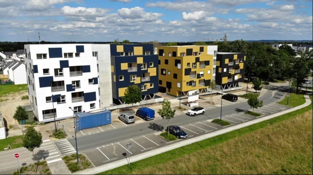Vue d’ensemble des 36 logements construits à base de conteneurs, par Maine-et-Loire Habitat. © CO
