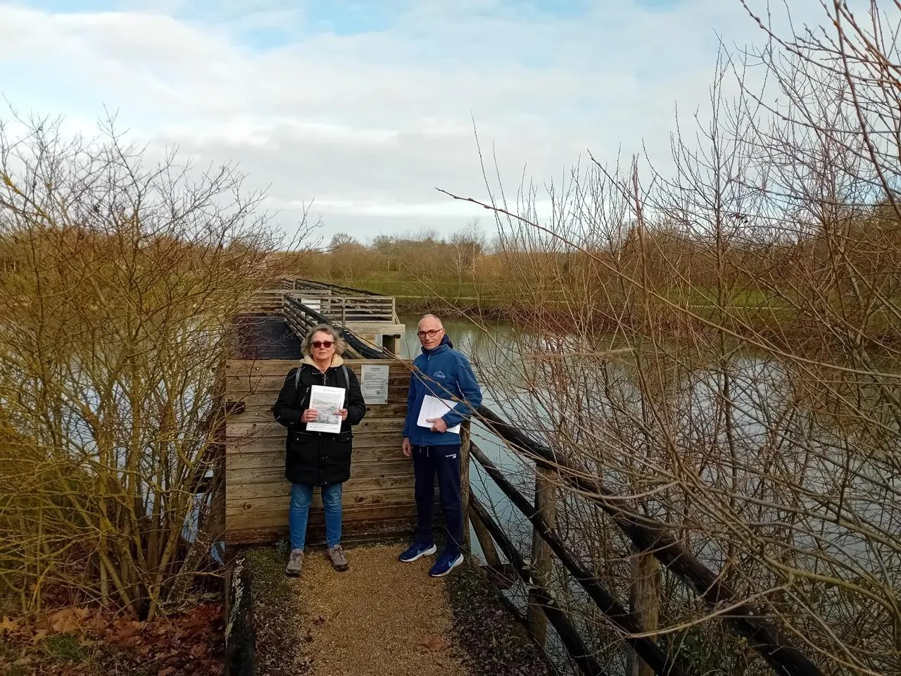 Patricia Busnel vice-présidente et Jean-Marc Thommeret, président de l’association Les Défis du Cœur devant la passerelle fermée au public, à Saint-Sylvain-d’Anjou, en Maine-et-Loire. © Ouest-France