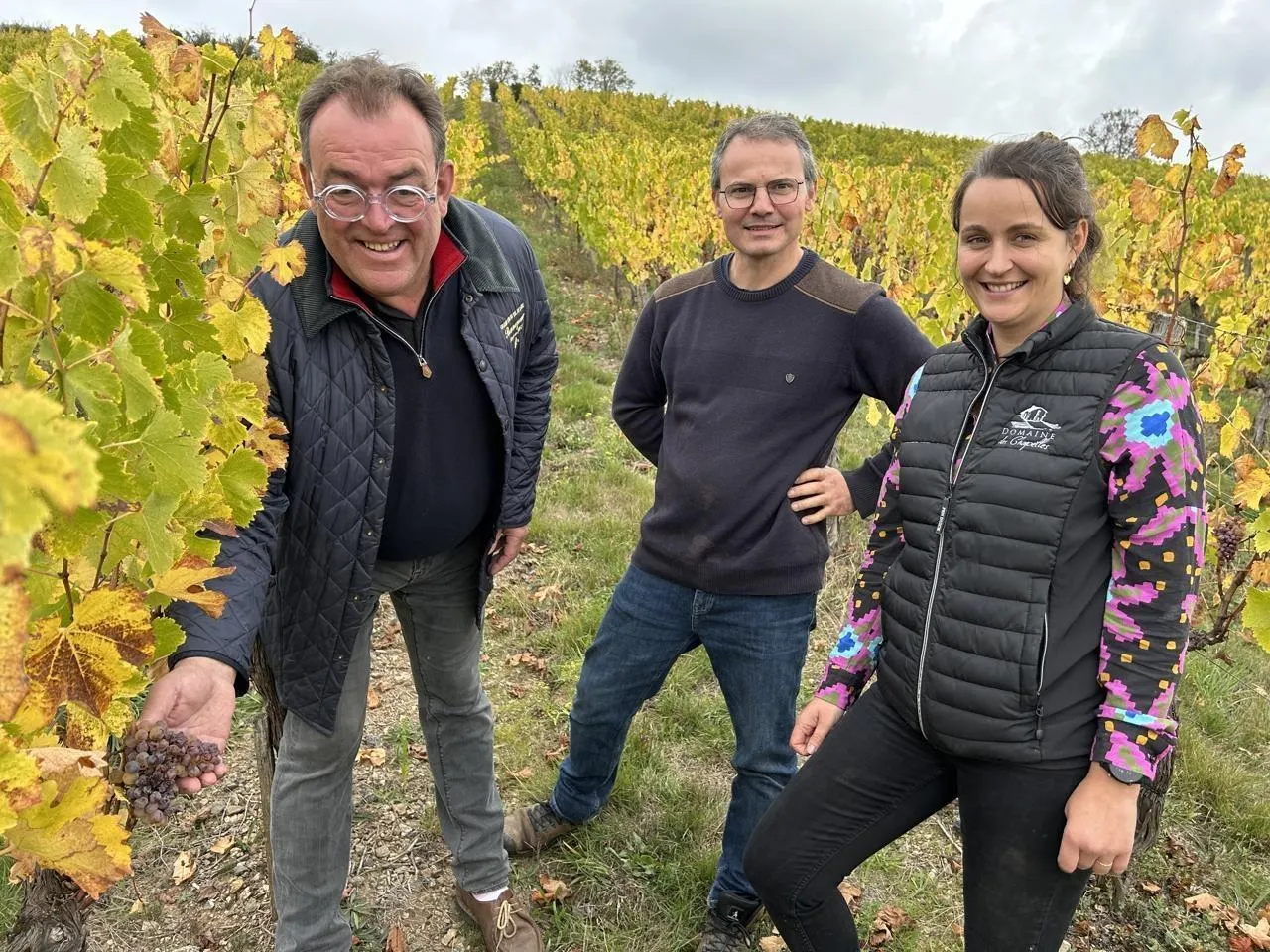 François Geffard, président de l’appellation Bonnezeaux ; Nicolas Bouleau, vice-président, et Violaine Brault. Tous les trois, producteurs de vins blanc liquoreux Bonnezeaux, s’attendent à un millésime exceptionnel. © OUEST-FRANCE.