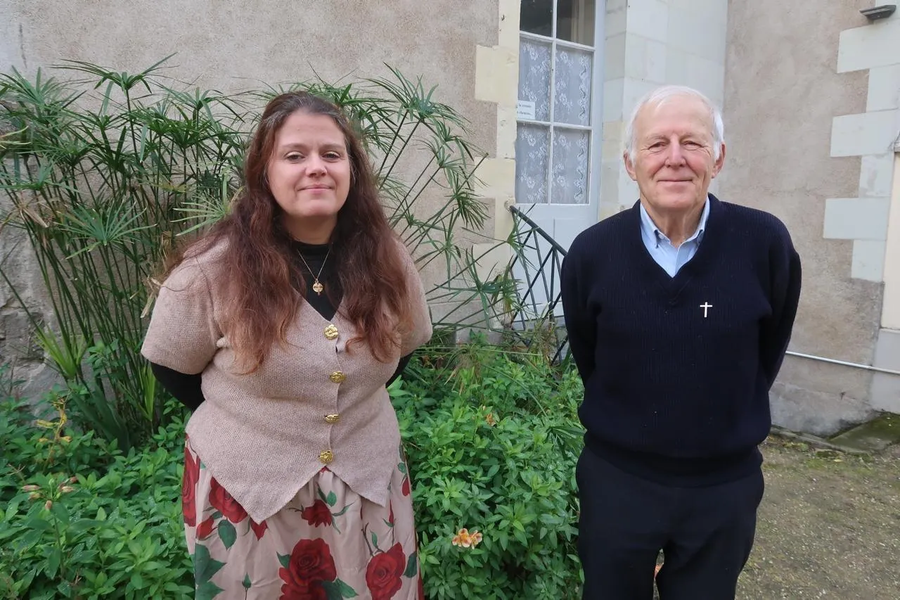 Beaufort, le 28 octobre 2025. Mylène Pitault est depuis un an coordinatrice des équipes qui accompagnent les familles en deuil, au sein du Pôle d'animation missionnaire du Baugeois-Vallée. Elle est ici aux côtés de l'abbé Loïc Bruneau. © CO - Agathe LE NUEFF