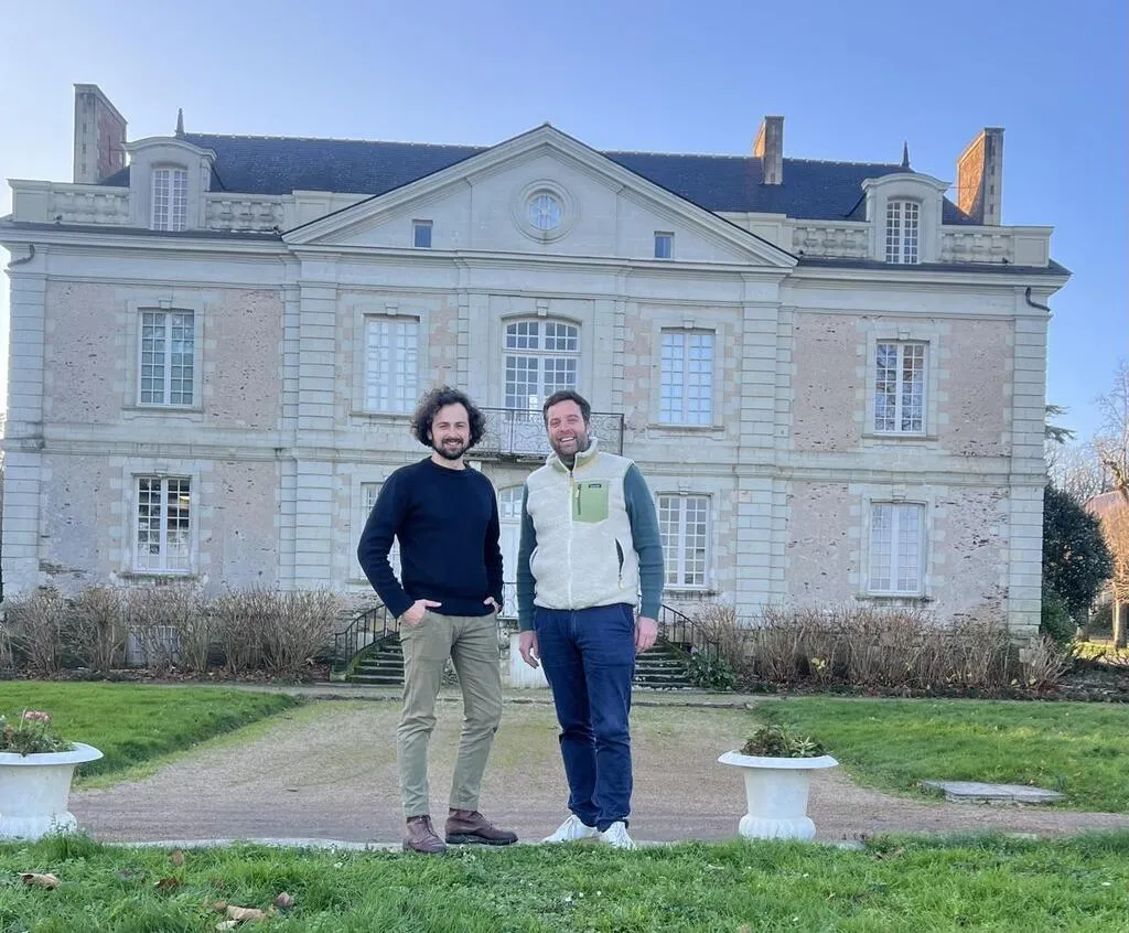 Romain Zarazaga et Arthur Crézé devant le Petit Serrant et le restaurant « Lueurs » qui accueillera son public dans quelques jours. © Petit Serrant
