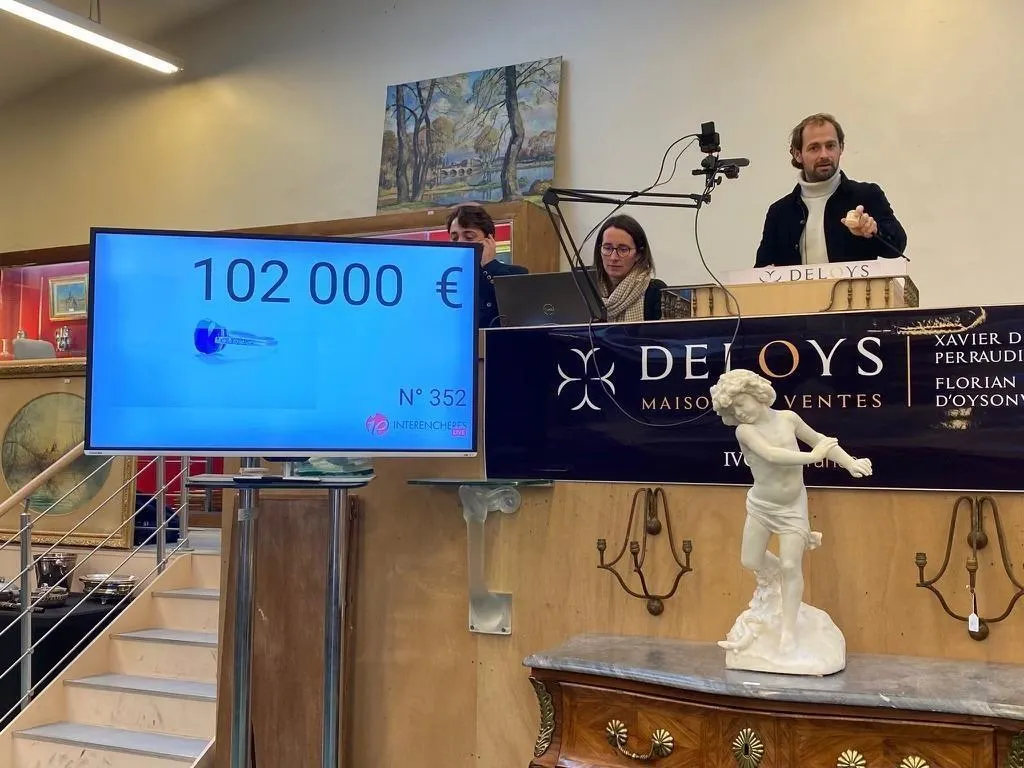 Une bague en platine ornée d’un saphir, trouvée « au milieu de bijoux ordinaires » dans une maison au nord d’Angers (Maine-et-Loire), a été adjugée pour 102 000 €, ce jeudi 21 novembre, lors d’une vente au sein de la maison Deloys. Soit près de dix fois son estimation.