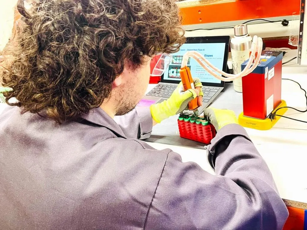 Dans les locaux de VoltR, au Technocampus de Verrières-en-Anjou, les cellules sont extraites manuellement des batteries mais d’ici deux ans, 90 % de l’activité sera automatisée. © Ouest-France