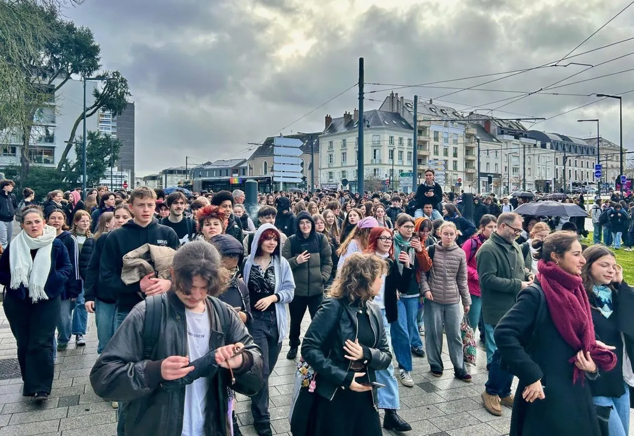 Un millier de personnes, dont 800 lycéens, ont manifesté spontanément ce vendredi pour défendre les conditions de travail au lycée Du Bellay au lendemain de l’annonce de la dotation globale d’enseignement, en baisse de 42 heures.