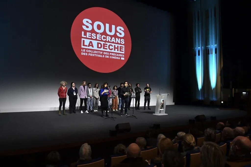 Le collectif Sous les écrans, la dèche a fait part de ses revendications, au tout début de la soirée inaugurale. © Ouest-France