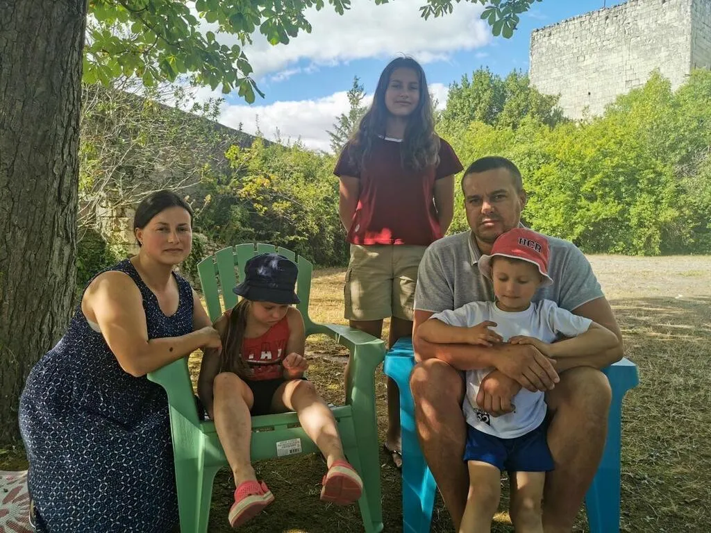 Luidmila, son compagnon Sasuik et leurs trois enfants, Yana, Solonia et Taros ont fui Tsuman' en Ukraine. Au centre d’accueil proposé par l’Abri de la providence, à l’abbaye Saint-Nicolas, ils sont à proximité du CHU d’Angers pour apporter les soins nécessaires à leur fille dans sa lutte contre le cancer. © Ouest-France