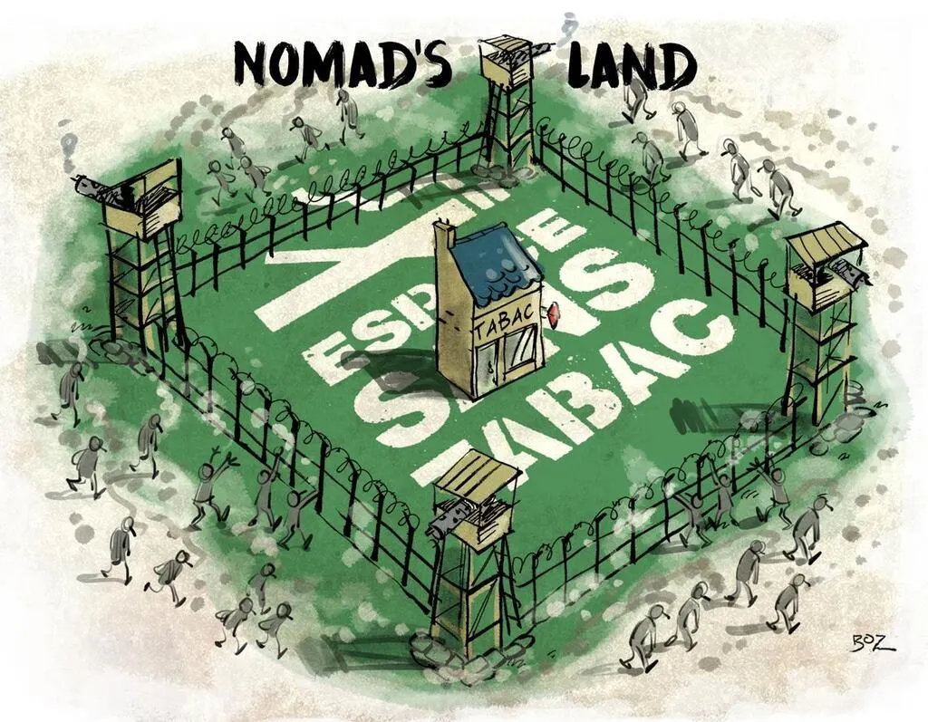 Depuis le 1er juillet, Angers, comme les autres villes de France, interdit le tabac dans certains espaces publics. Boz, notre dessinateur, n’a pas pu s’empêcher d’imaginer un bureau de tabac dans ces zones. Il est taquin… © Benoît Vieillard