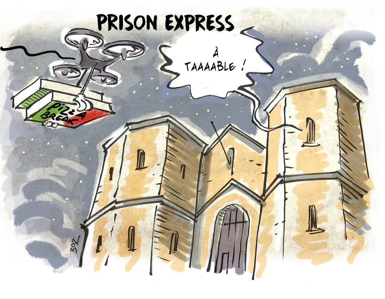 Cette semaine, à Angers (Maine-et-Loire), une femme de 21 ans a tenté de livrer des téléphones par drone à la prison d’Angers. Boz s’en amuse. © Boz