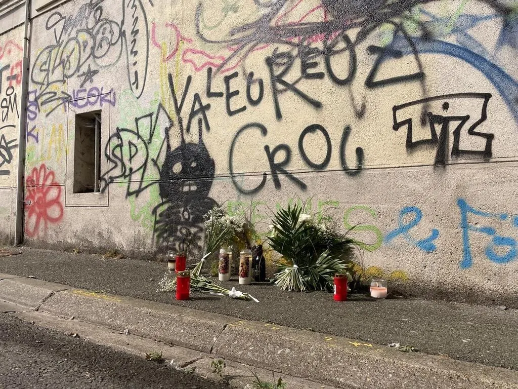 Des fleurs ont été déposées, rue de la Croix, à l’endroit ou Sergio Z. a été tué d’une balle dans la tête, samedi 17 août 2024. © Ouest-France