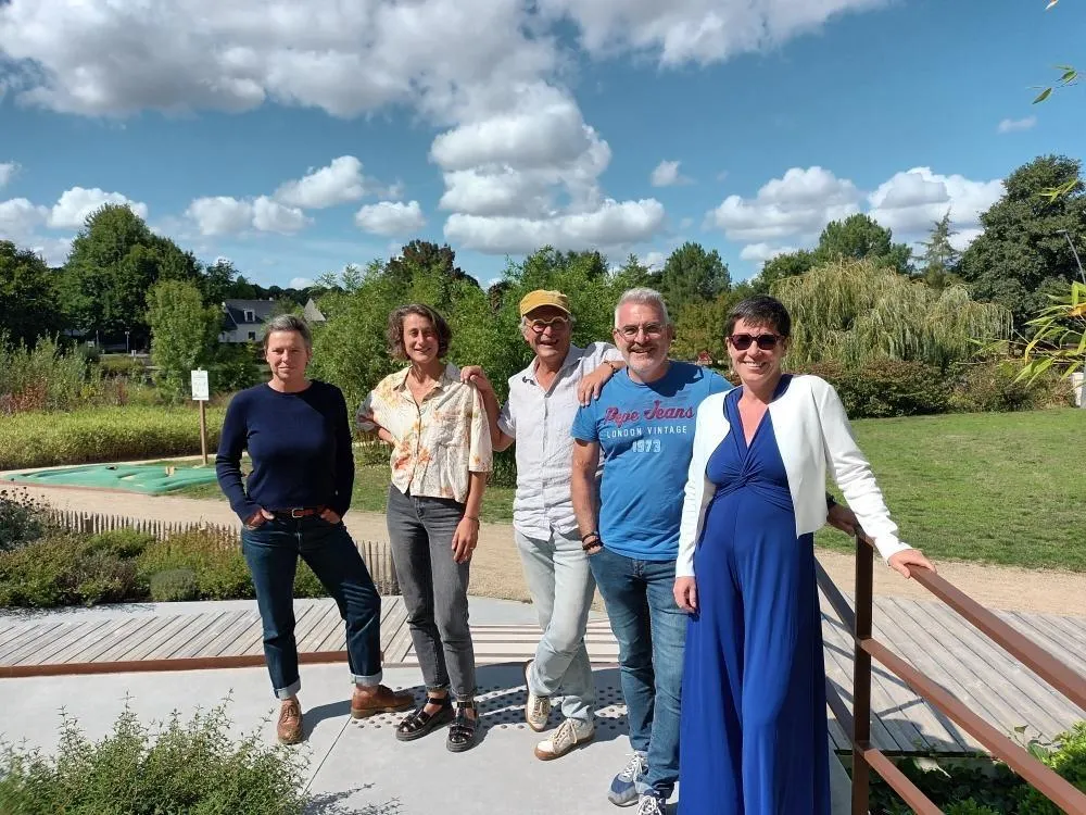 De gauche à droite : Anne Rivereau, Manon Lebrun, Benoit Lebrun, Jérôme Bimier de l’association C’est par ici qu’ça se passe, et Hélène Bernugat. © Ouest-France