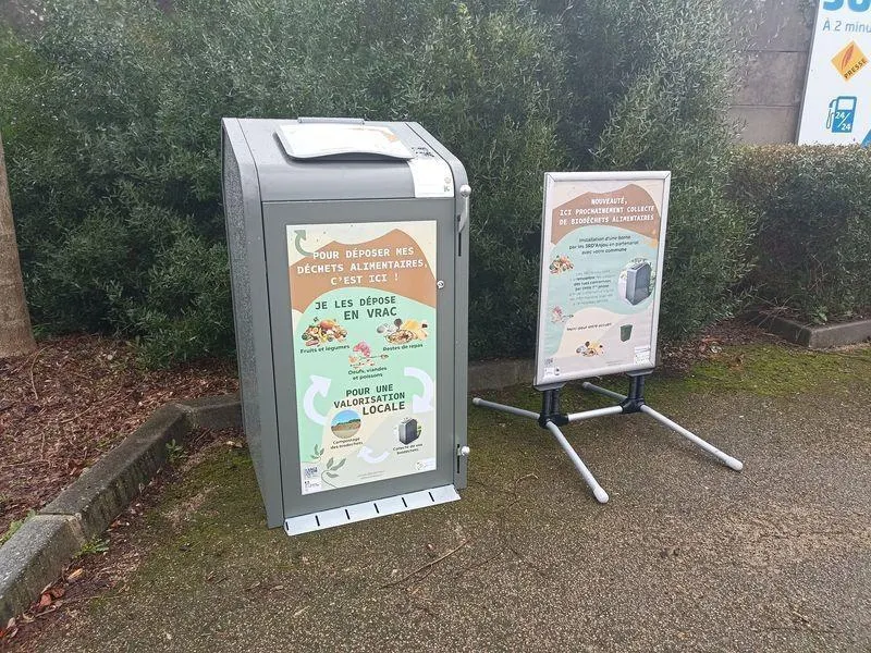 Un bac de collecte de bioressources alimentaires, déjà installé dans Bécon-les-Granits. © 3RD’Anjou