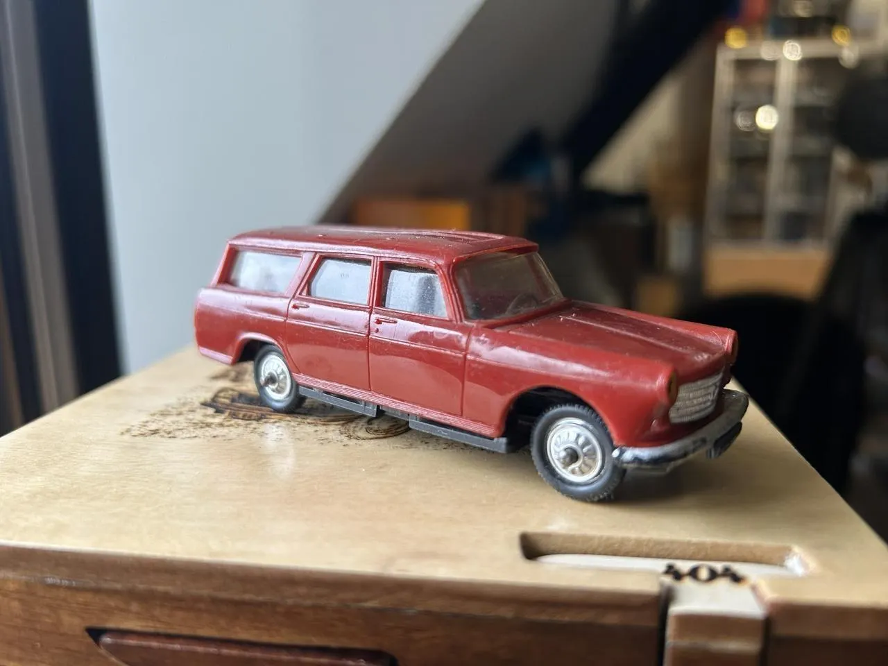 Philippe possède, dans sa collection de Peugeot 404 miniatures, des voitures originales, comme ce modèle utilisé par les mécaniciens pour intervenir sur les vélos, durant le Tour de France. © Ouest-France