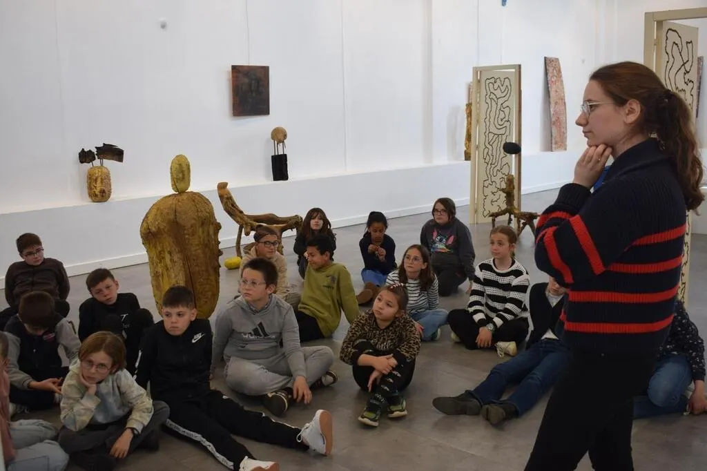 Puis la responsable invite les écoliers à dire ce qu’évoque pour eux cette installation. « Je vois un oiseau », dit l’un. « Et moi un pélican », ose un autre. Les monstres occupent une place de choix, les animaux fantastiques aussi. Certains ont également remarqué « comme des meubles, un fauteuil, une table basse ».