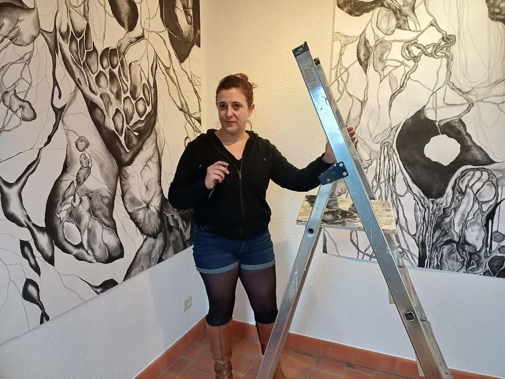 Aurélie Fatin est originaire de Saumur et a fait ses armes à Toulouse (Haute-Garonne) où elle a pratiqué l’art de l’installation. Depuis 2019, elle se tourne vers le dessin et la porcelaine, et s’attache à explorer l’organique, le vivant par des processus de prolifération des formes. « Mes dessins s’inspirent des formes de la nature, du corps vu sous sa dimension microscopique, évoquant tantôt des veines, des cellules, des synapses, tantôt des branches, des végétaux, des pierres, explique Aurélie Fatin. Chacun y lit ce qui lui parle le plus, les formes s’enchevêtrant les unes aux autres . »