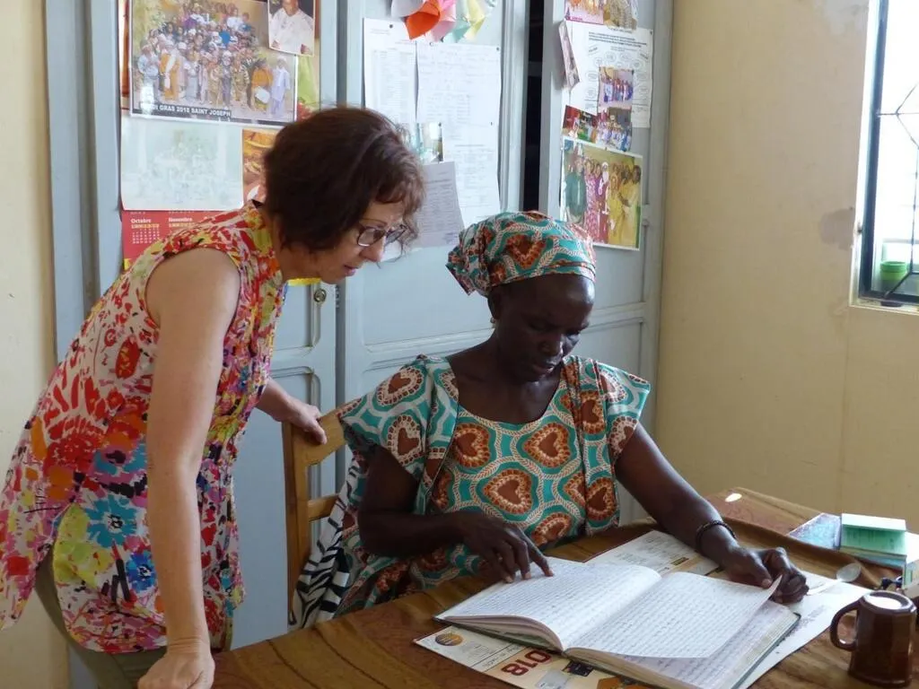 Régine Kurtz, médecin à la retraite, en conversation avec Marie-Noëlle Thiaw, l’enseignante de l’école du village de Peykouck Serere, au Sénégal. © Archives DR