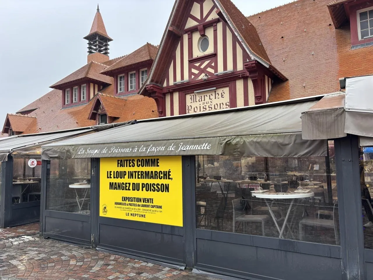 À Trouville-sur-Mer, c’est quoi cette affiche jaune sur le marché aux poissons ?... |