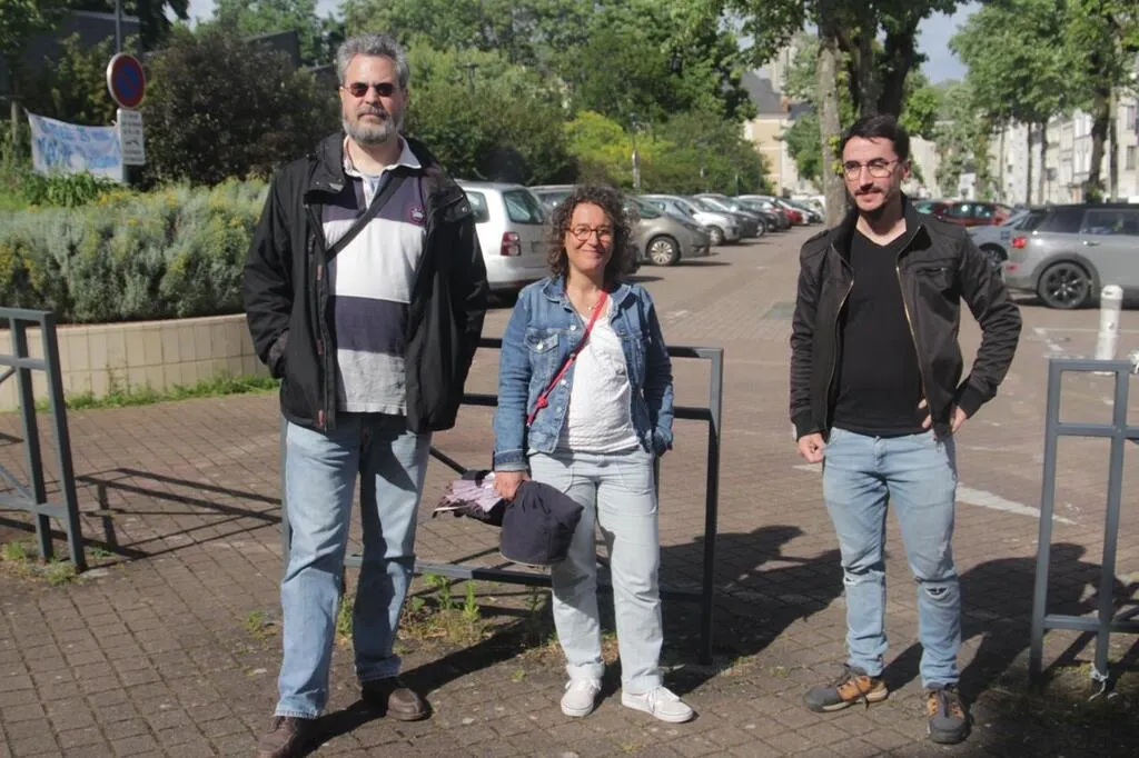 Gilles Martel, Magalie Sapriel et Nicolas Marty, devant le collège-lycée Renoir sont les organisateurs d’une mobilisation vendredi 31 mai à Angers (Maine-et-Loire). © Ouest-France