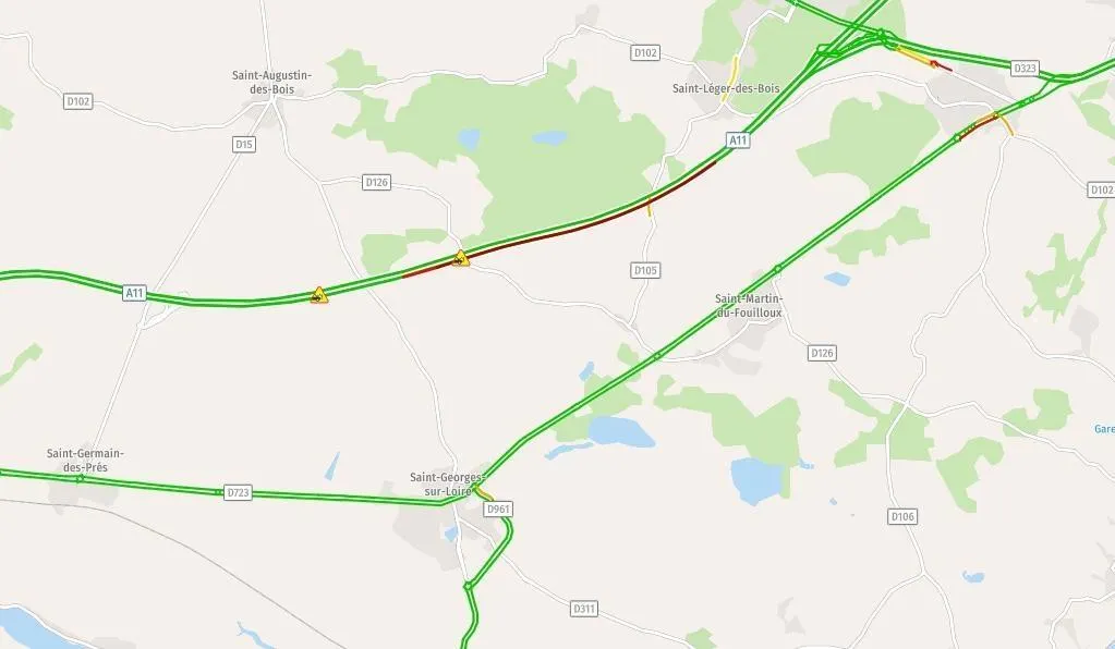 Ce mardi 8 juillet 2025 vers 8 h, un accident s’est produit sur l’autoroute A11, dans le sens Nantes - Paris, à hauteur de la commune de Saint-Léger-des-Bois, près d’Angers (Maine-et-Loire).