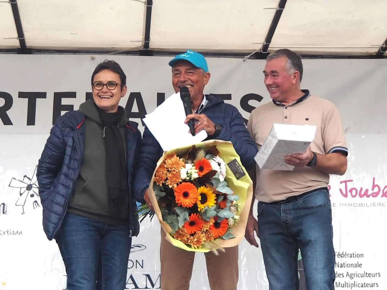 Dimanche à Andard, Alain Dohin a animé pour une dernière fois la course LA’titude qu’il a aidée à créer. Géraldine Guillaut et Christophe Pineau l’ont chaleureusement remercié. © CO