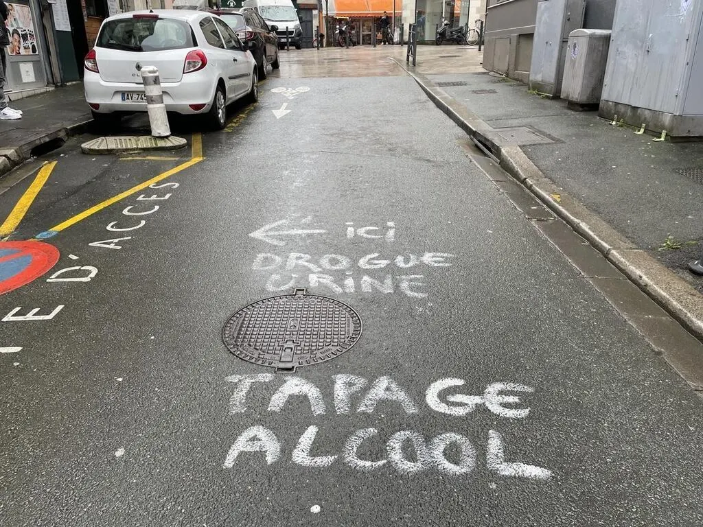 Rue Valdemaine, on peut ainsi y lire : « Ici, drogue, urine, tapage, alcool ». Le texte est accompagné d’une flèche. Celle-ci mène ...