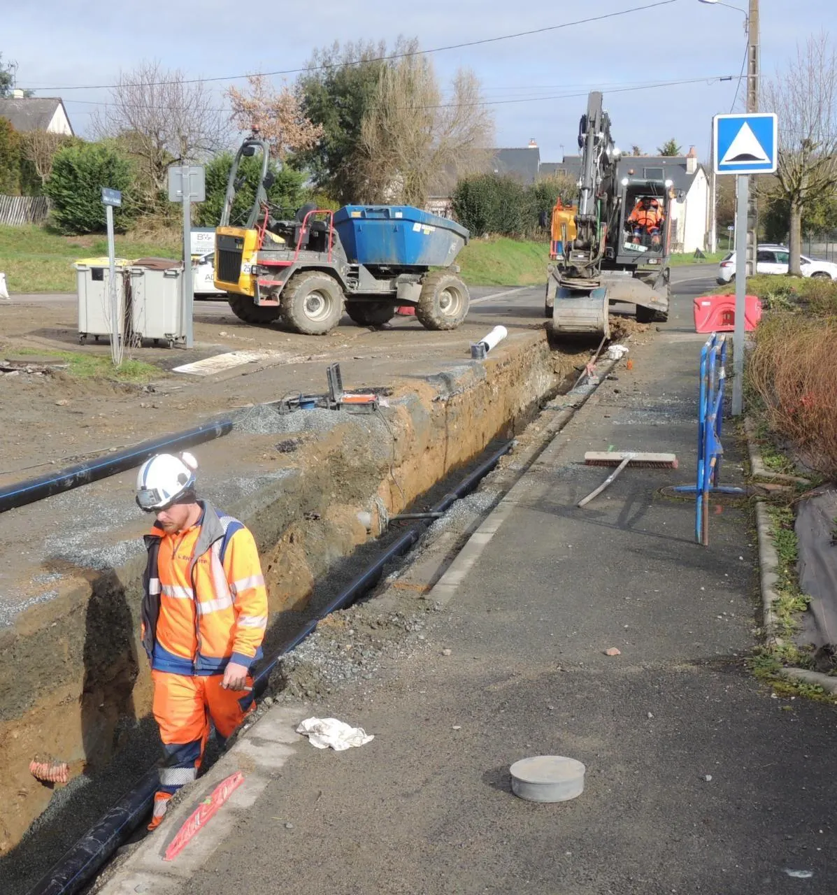 Malgré les conditions atmosphériques défavorables depuis la reprise des travaux début janvier, le chantier concernant les travaux de réseaux d’eau avance bien. Nicolas Boulord, maître d’ouvrage et responsable à Saumur Agglo ainsi que Fabien Noël, conducteur des travaux pour l’entreprise EHTP, surveillent le chantier. Celui-ci est arrivé à hauteur de la maison de retraite du Bois-Clairay. Puis ce sera la remontée de la fin de la rue Armand-Quénard pour arriver à hauteur de la rue du Clos-de-Vrai. Lors de la réunion de conseil municipal du jeudi 19 février, le maire Jérôme Harrault a indiqué qu’un enrobé avec le montant à charge de la commune serait posé dans la rue Armand-Quénard, suivant un périmètre délimité. Le responsable de l’entreprise EHTP a signalé que ces travaux seraient réalisés dans la première semaine du mois de mars. Rappelons que ce chantier de remplacement des réseaux d’eau est pris en charge par l’Agglo de Saumur pour un montant de 360 000 € HT. Fin mars, la situation devrait être décantée.