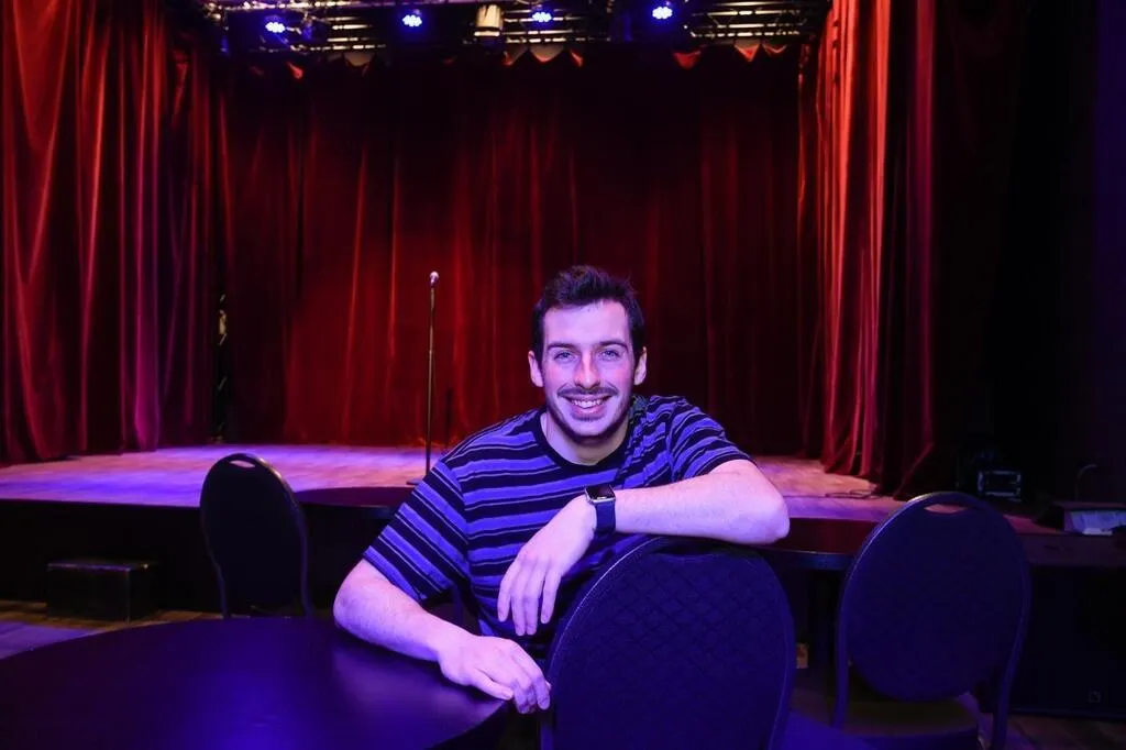 Angers, Les Folies Angevines, le 28 février 2023. Benjamin Dhooge coordonne l’association du Angers Comedy Club. © CO – Laurent COMBET