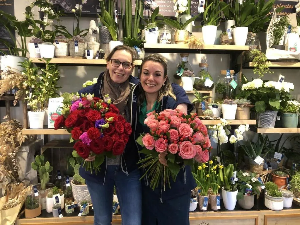 Myriam Drillot et Cynthia Rétif, gérantes de la boutique Monceau Fleurs, munies des paniers proposés à la vente le soir même. © Ouest-France