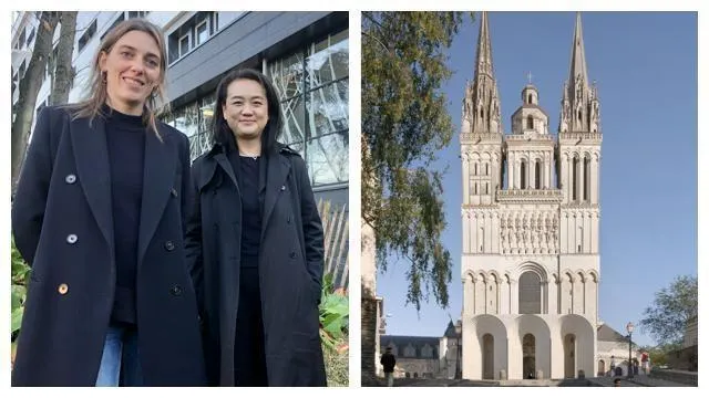 Elise Fauquembergue, cheffe de projet, et Chizuko Kawarada, directrice de l’agence parisienne de Kengo Kuma, lauréat du concours d’architecture portant sur la construction d’une galerie contemporaine pour protéger le portail polychrome de la cathédrale Saint-Maurice. Le porche sera livré au printemps 2024. © Kengo Kuma & Associates