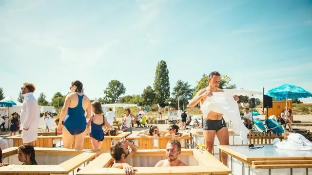 Voilà ce à quoi il faut s’attendre, sur l’esplanade Cœur de Maine, le week-end du 6 au 8 septembre ! « Bains publics », par la compagnie Trois points de suspension et le groupe Dakota. © Chereau