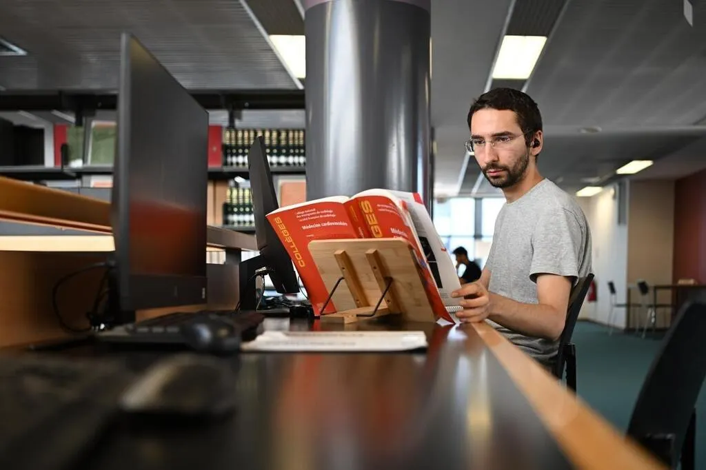 Angers, le 21 août 2023. Comme de nombreux étudiants en médecine à la BU, Alex révise ses cours avant l’épreuve cruciale de la mi-octobre. © CO - Josselin Clair