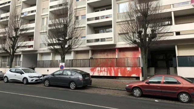 Au 85?de l’avenue Pasteur, la peinture rouge macule toujours les volets et les murs de l’Alvarium, installé dans un appartement du rez-de-chaussée. © Archives