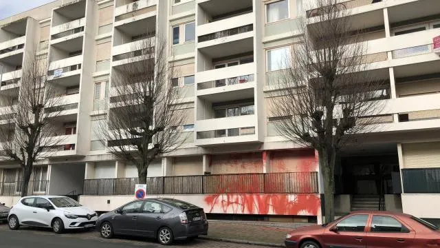 Angers. La façade de l’Alvarium taguée à la peinture rouge... |