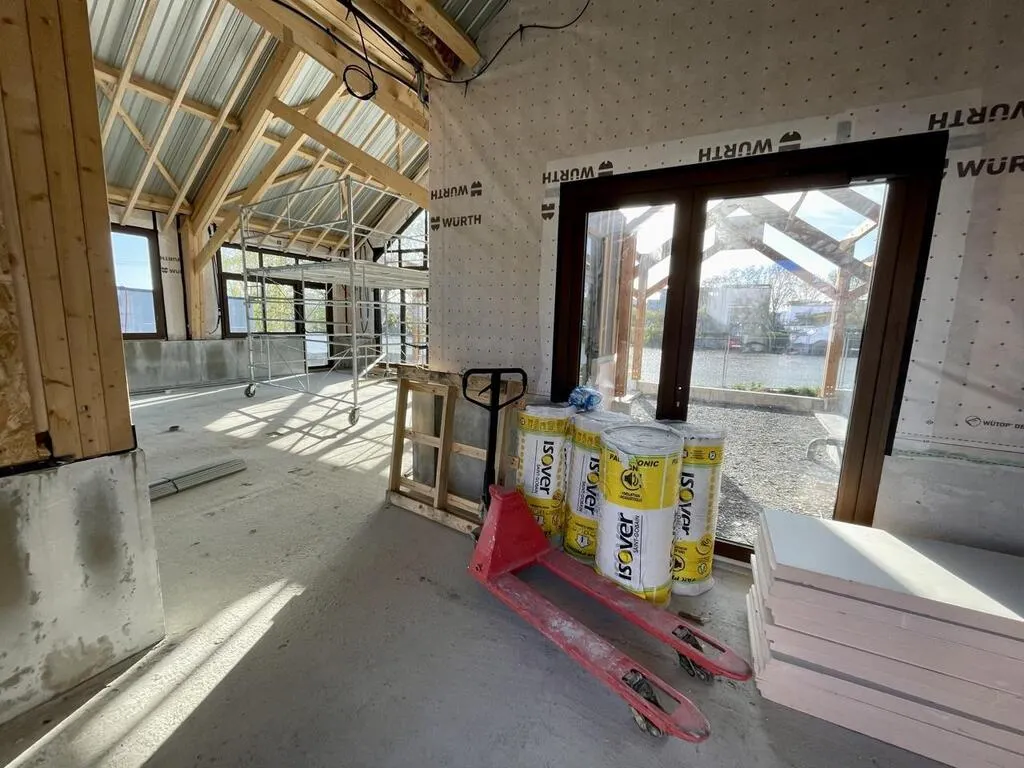 Deux salles inondées de soleil derrière de grandes baies vitrées, un poêle à bois central pour chauffer l’espace en hiver comme à la maison