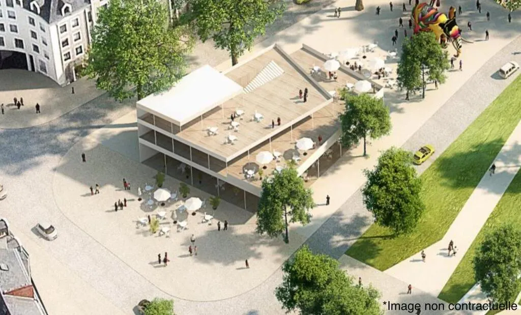 L’esquisse, présentée en 2019, est trompeuse : place Molière, à Angers (Maine-et-Loire) les halles alimentaires qui vont être construites le seront sur un seul niveau, et sans terrasse.