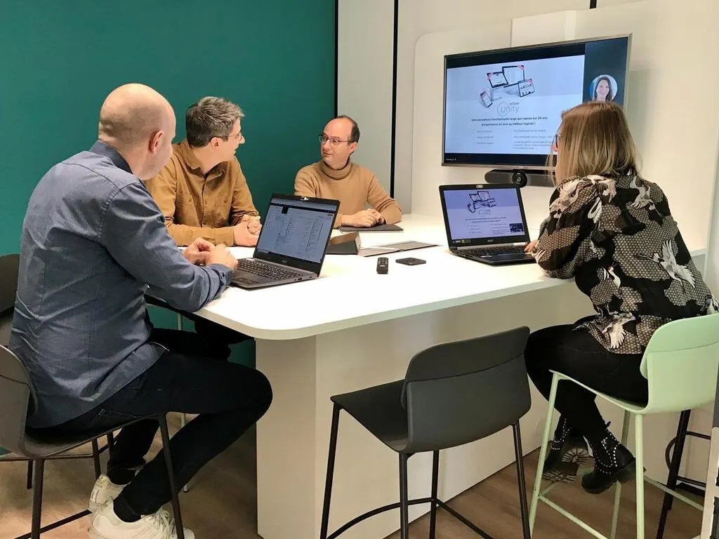 Michel Perrinet, troisième en partant de la gauche, cofondateur d’Octave : « Un cadre de travail agréable doit permettre aux collaborateurs de donner le meilleur d’eux-mêmes. » © DR