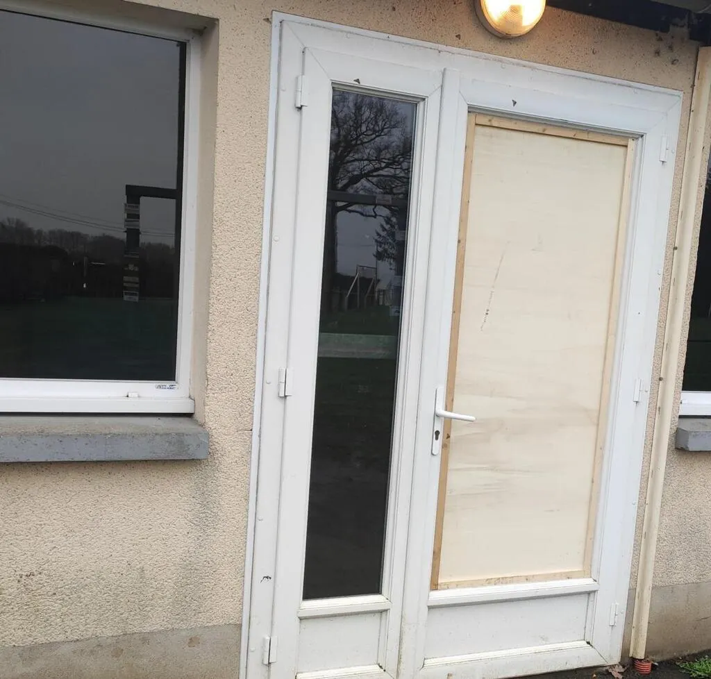 La vitre de la porte d’entrée du bar du foot a été fracturée © Ouest-France
