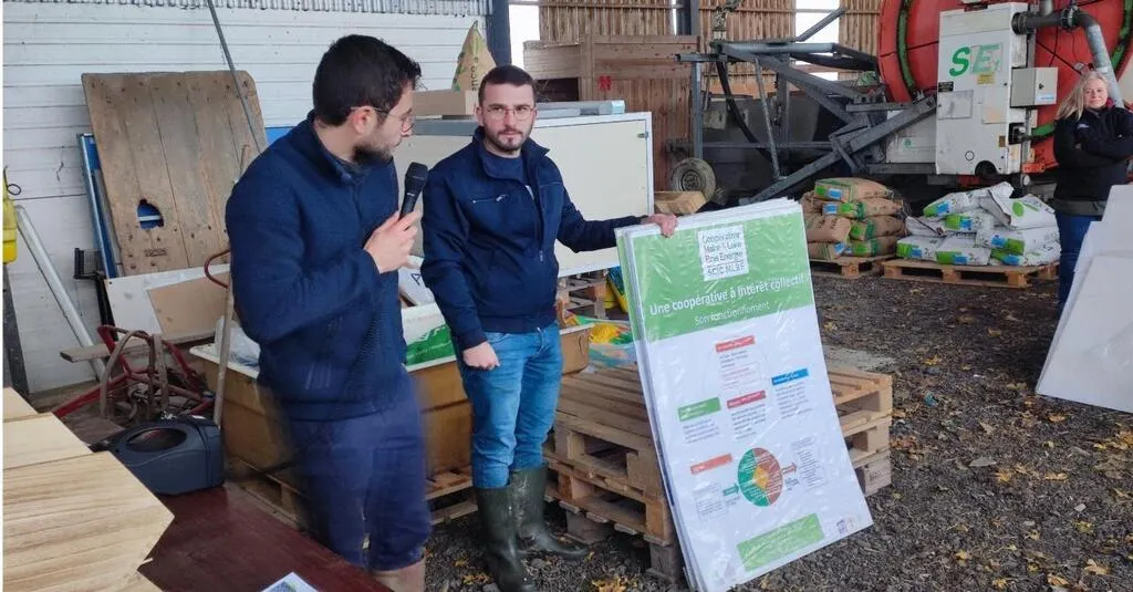 Maxime Quignon de la coopérative a présenté la filière bois énergie, ici en compagnie de Thomas Jolly, conseiller territoire à la Chambre d’agriculture des Pays de la Loire. © CO
