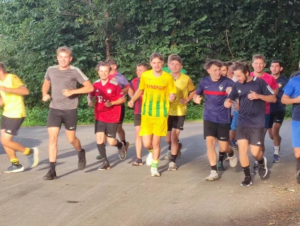Les entraînements ont repris par des courses dans le bois de la Pentière, histoire d’évaluer la forme physique de chaque joueur. © Ouest-France