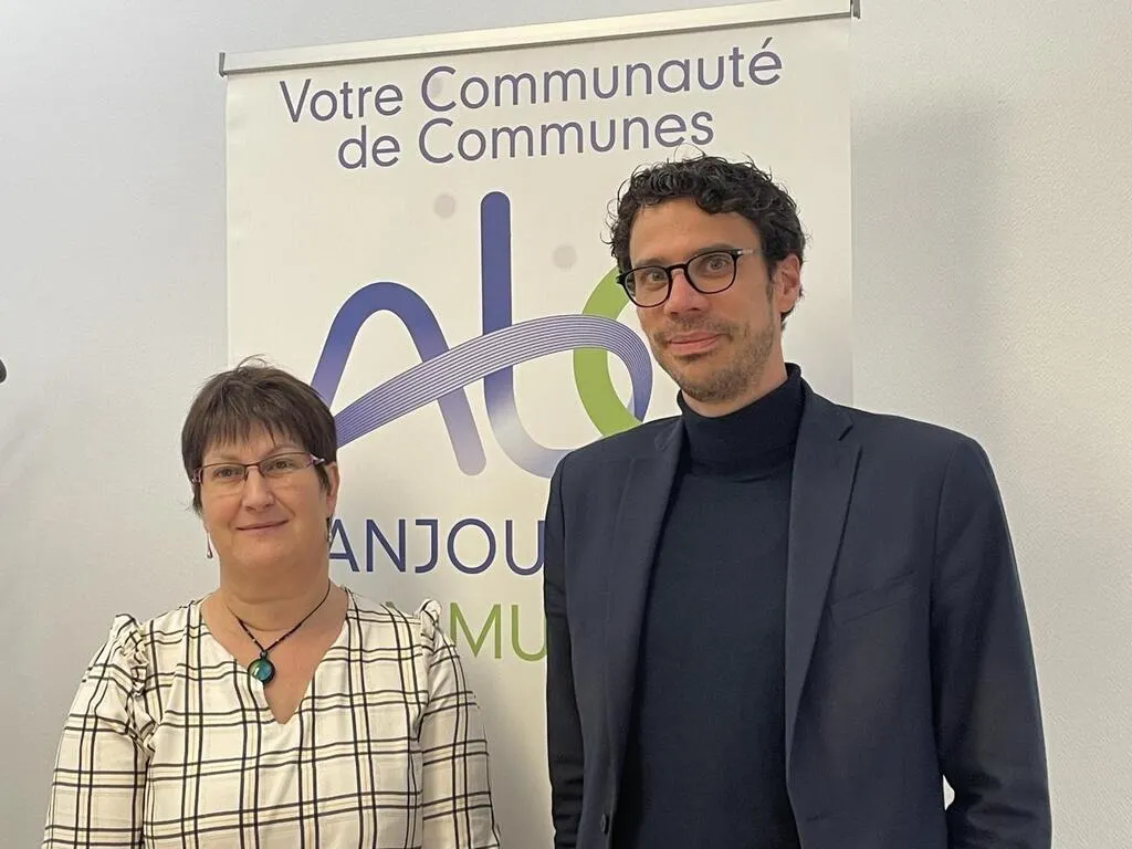 Françoise Coué, vice-présidente en charge de l’urbanisme, et Thibault Plard, responsable du service planification – urbanisme – habitat à Anjou Bleu communauté, convient les habitants à trois réunions publiques autour de l’élaboration du Plan local d’urbanisme intercommunal. © Ouest-France