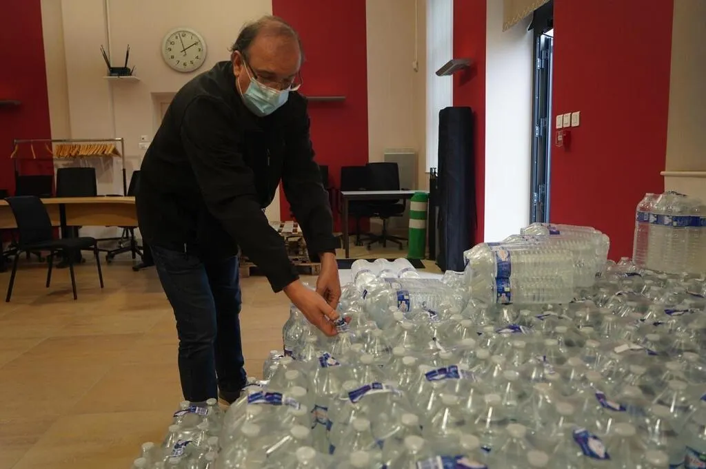 À Saint-Melaine-sur-Aubance, un habitant se fournit en pack d’eau distribué dans un local de la mairie par Veolia. © Ouest-France