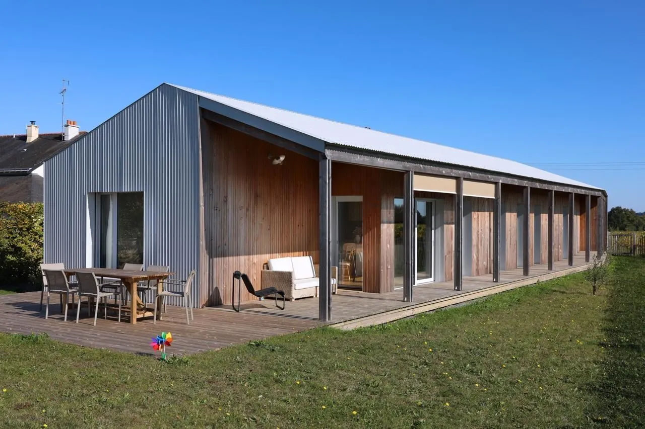 Entre Brissac-Quincé et Saint-Saturnin-sur-Loire, à trois kilomètres du fleuve, cette longère s’approprie les codes propres aux bâtiments agricoles, pour mieux se fondre dans le paysage.