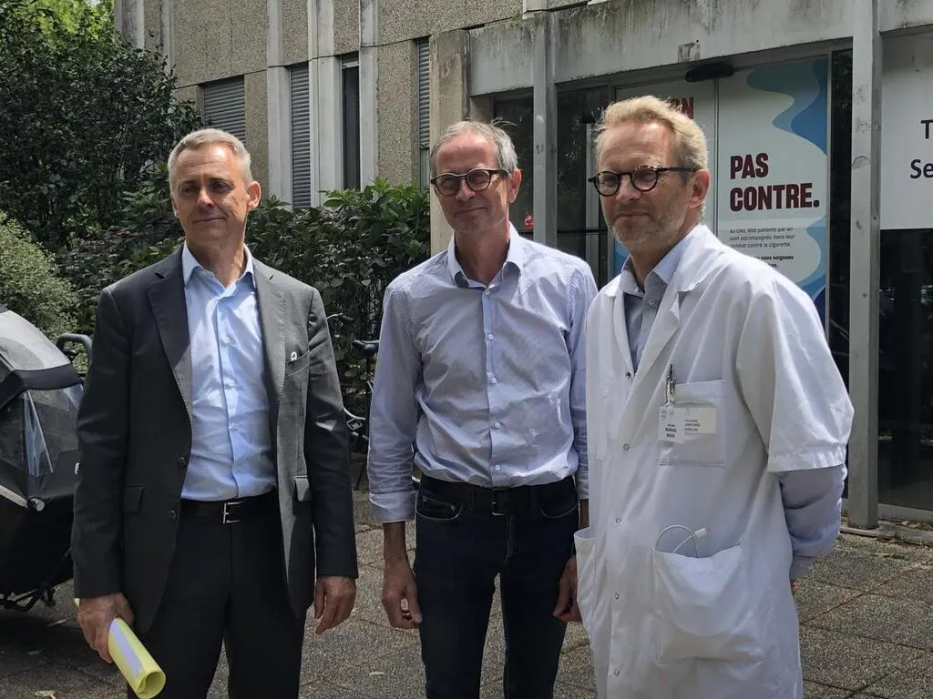 Arnaud Pouillart, directeur général adjoint du centre hospitalier universitaire (CHU) d’Angers (Maine-et-Loire), le professeur Dominique Savary, chef du service des urgences, et le docteur Guillaume Bouhours, médecin réanimateur et vice-président de la commission médicale d’établissement. © Ouest-France