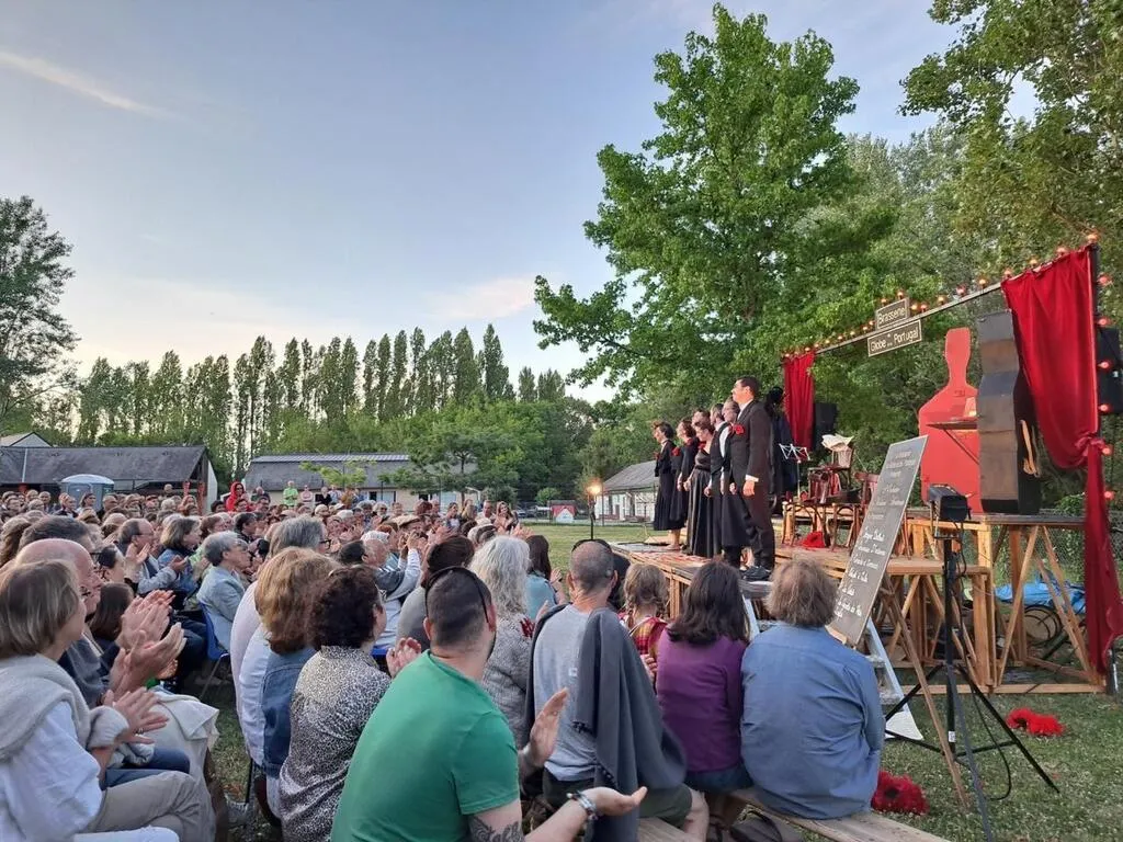 Les spectacles de la Tournée des Villages sont donnés pour la plupart en plein air comme ici « L’Orchestre » en 2023. © TRPL