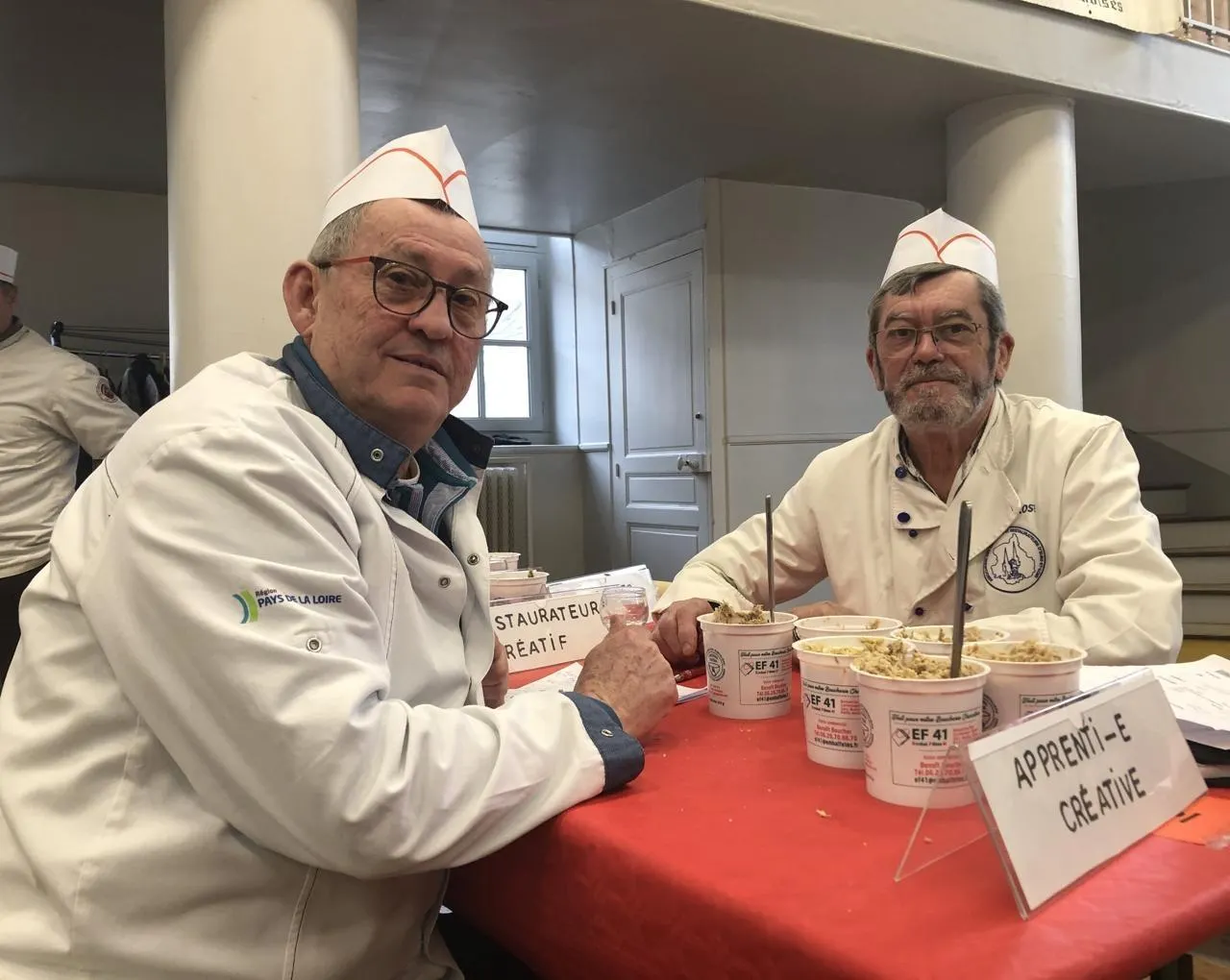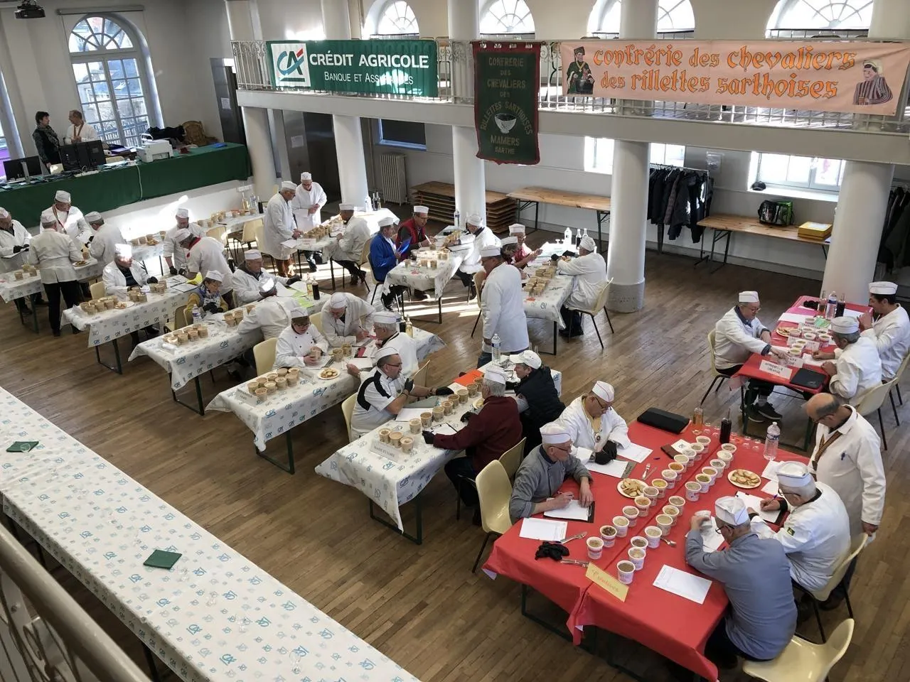 Les rillettes créatives, en nombre, apportent de la couleur sur la table des jurats, ce samedi 14 février 2026, à Mamers (Sarthe). © Ouest-France