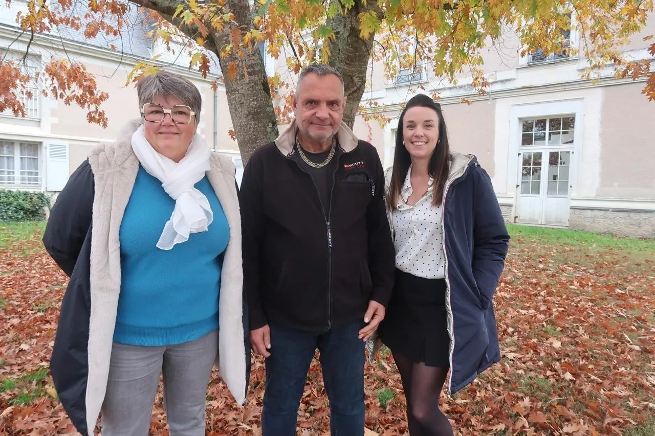Beaufort-en-Anjou, le 29 octobre 2025. Marc Denis bénéficie de l’accompagnement d’Étape pour l’aider à retrouver un emploi. Il est ici entouré de Fabienne Koné (directrice) et Vanessa Peltier (chargée des mises à disposition). © CO – Agathe LE NUEFF
