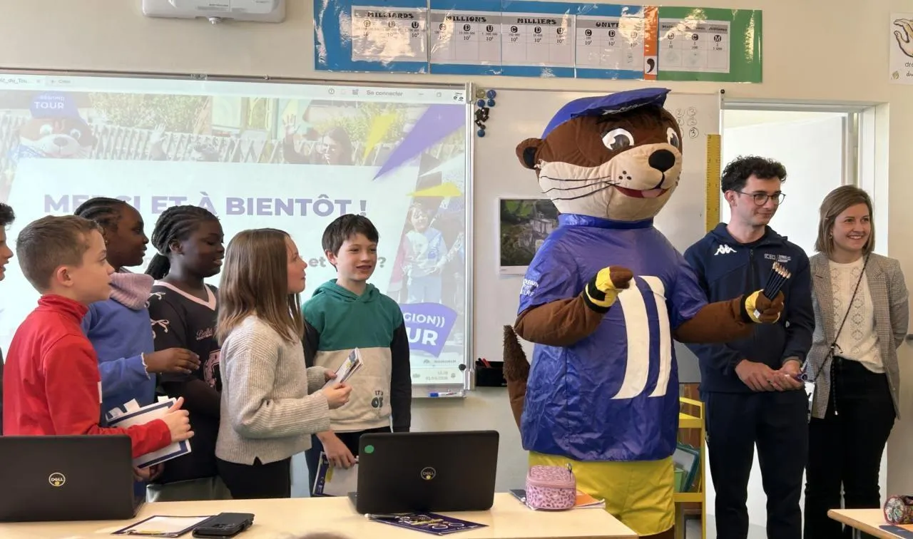 Mardi 3 mars, la classe de CM2 du groupe scolaire Saint-Exupéry a reçu Similien Hamon, coureur cycliste professionnel de l’équipe nantaise CIC Pro Cycling Academy, et Dynamo, la mascotte du Région Pays de la Loire Tour. Cette course cycliste passera par Avrillé jeudi 9 avril. Cette rencontre a conclu une journée où les élèves ont participé à une activité savoir rouler, organisée par la Ville d’Avrillé. © Ouest-France