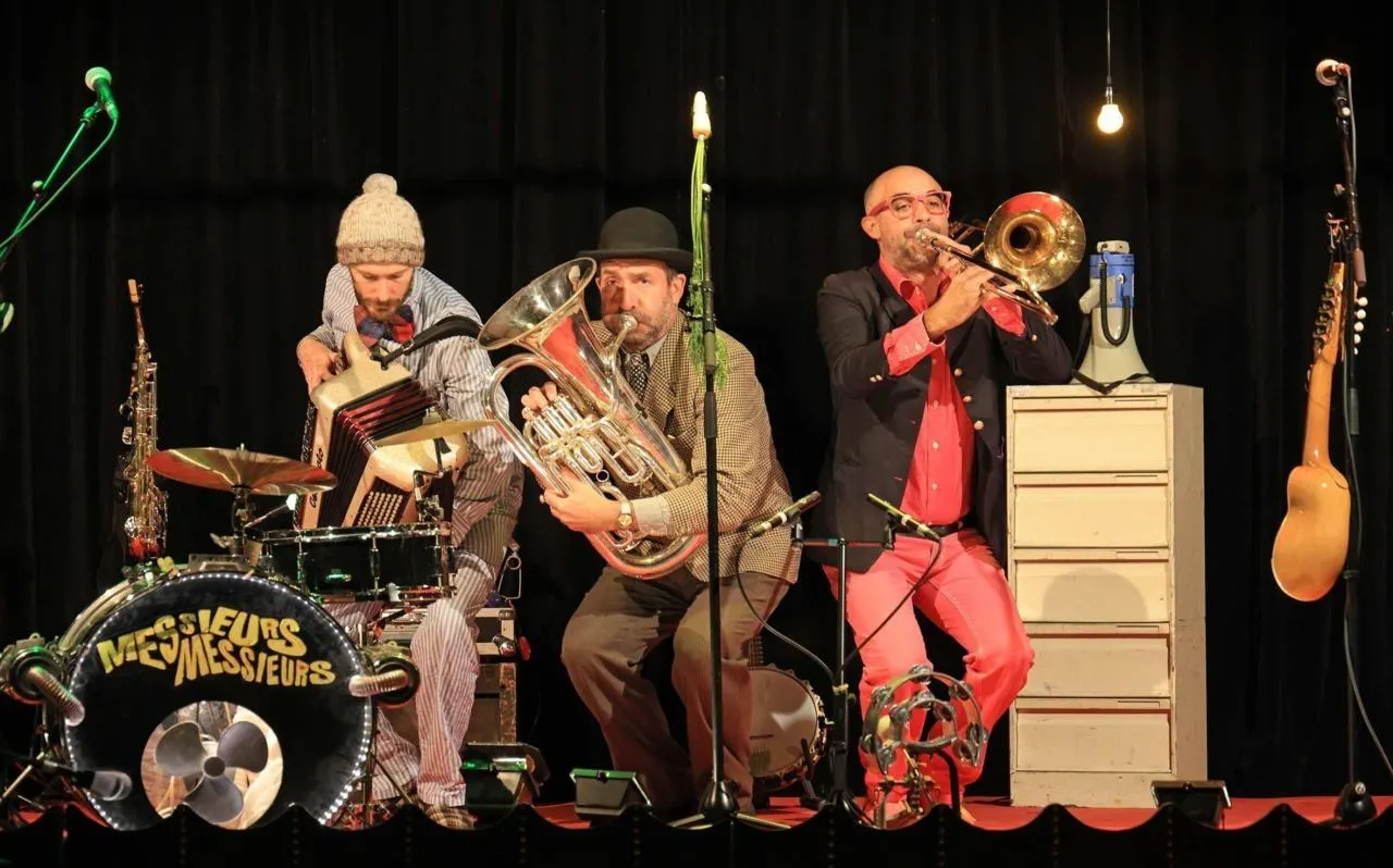 Messieurs Messieurs, trois drôles de personnages qui déballent leur bric-à -brac musical. © Messieurs Messieurs