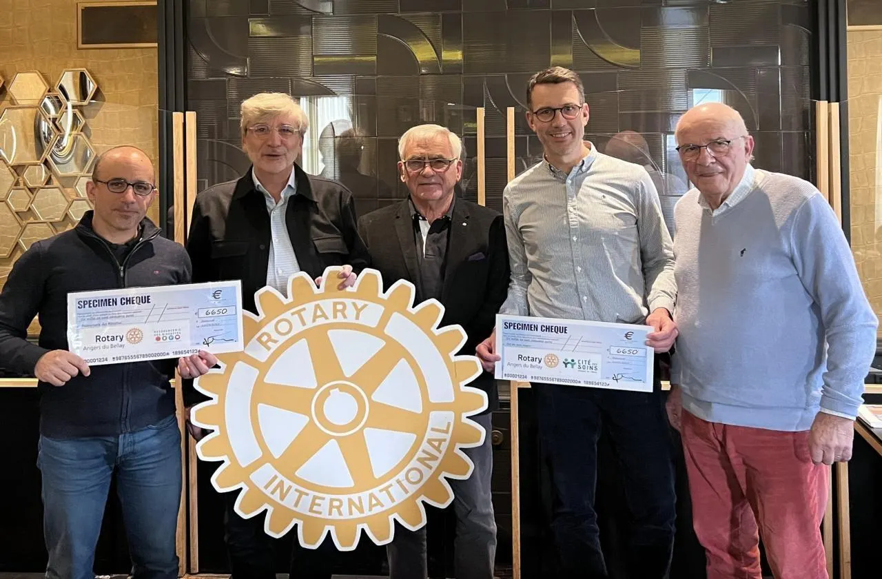 Le club Rotary Angers Du-Bellay, organisateur de cette rencontre, a remis, hier, la somme de 6 650 € à chacune des associations angevines, Cité des soins et ressourcerie des Biscottes.  Cette aide que nous renouvelons depuis plusieurs années est le fruit des droits de jeux et les dons de nombreux partenaires »,